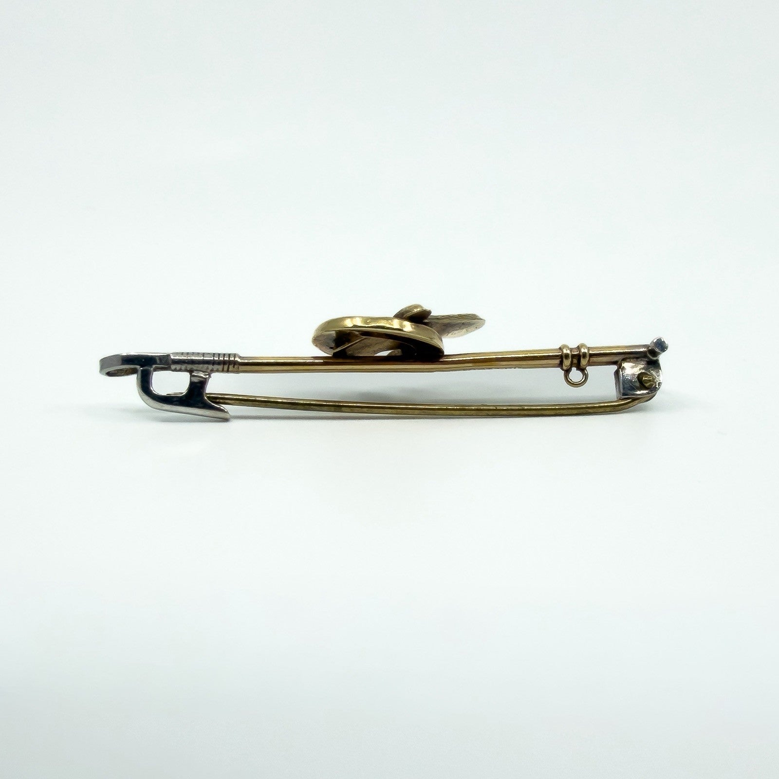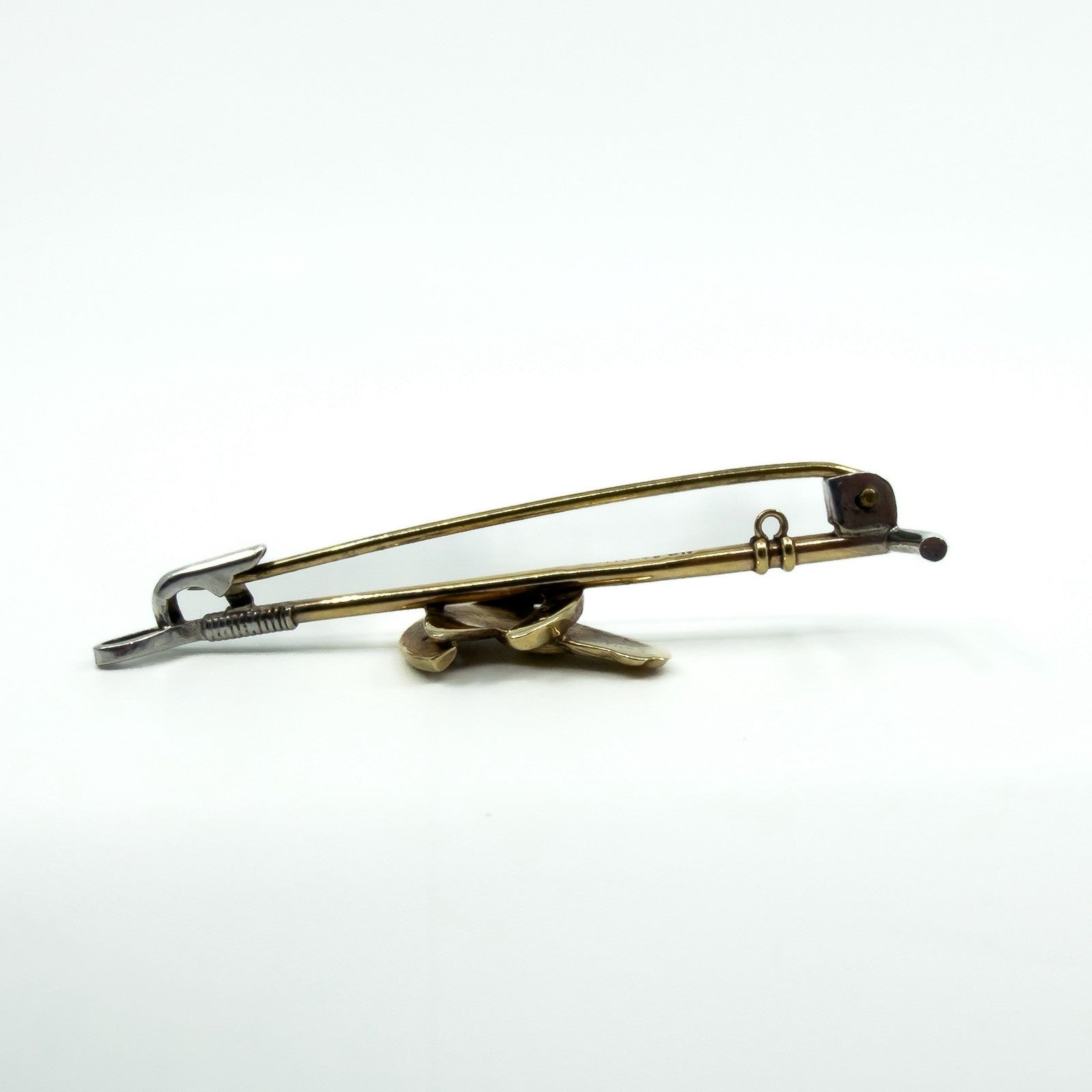 It is fitted with a pin and hook and is partially stamped 9ct and SIL, and also tested for 9ct gold. The brooch could be converted to a pendant by adding a hoop to the back or top of the riding crop. It measures approximately 51.3mm x 12.2mm and weighs approximately 2.6g.