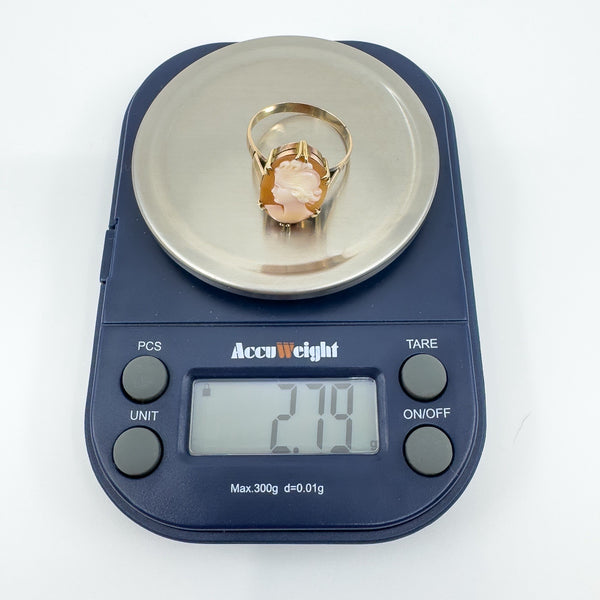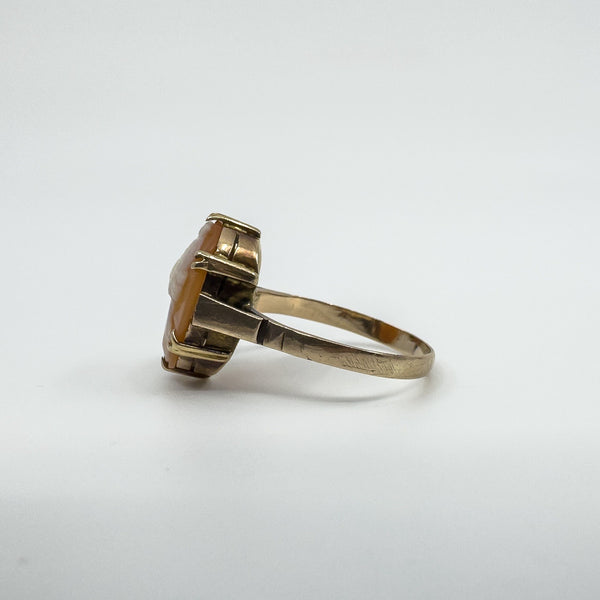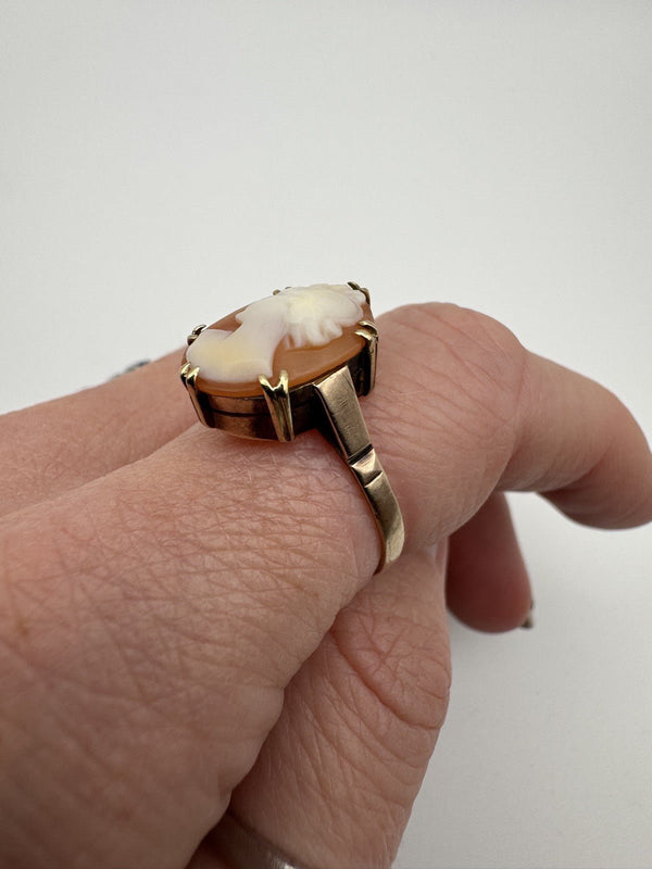 Vintage 9ct Gold Large Chunky Carved Cameo Ring 375 Size P