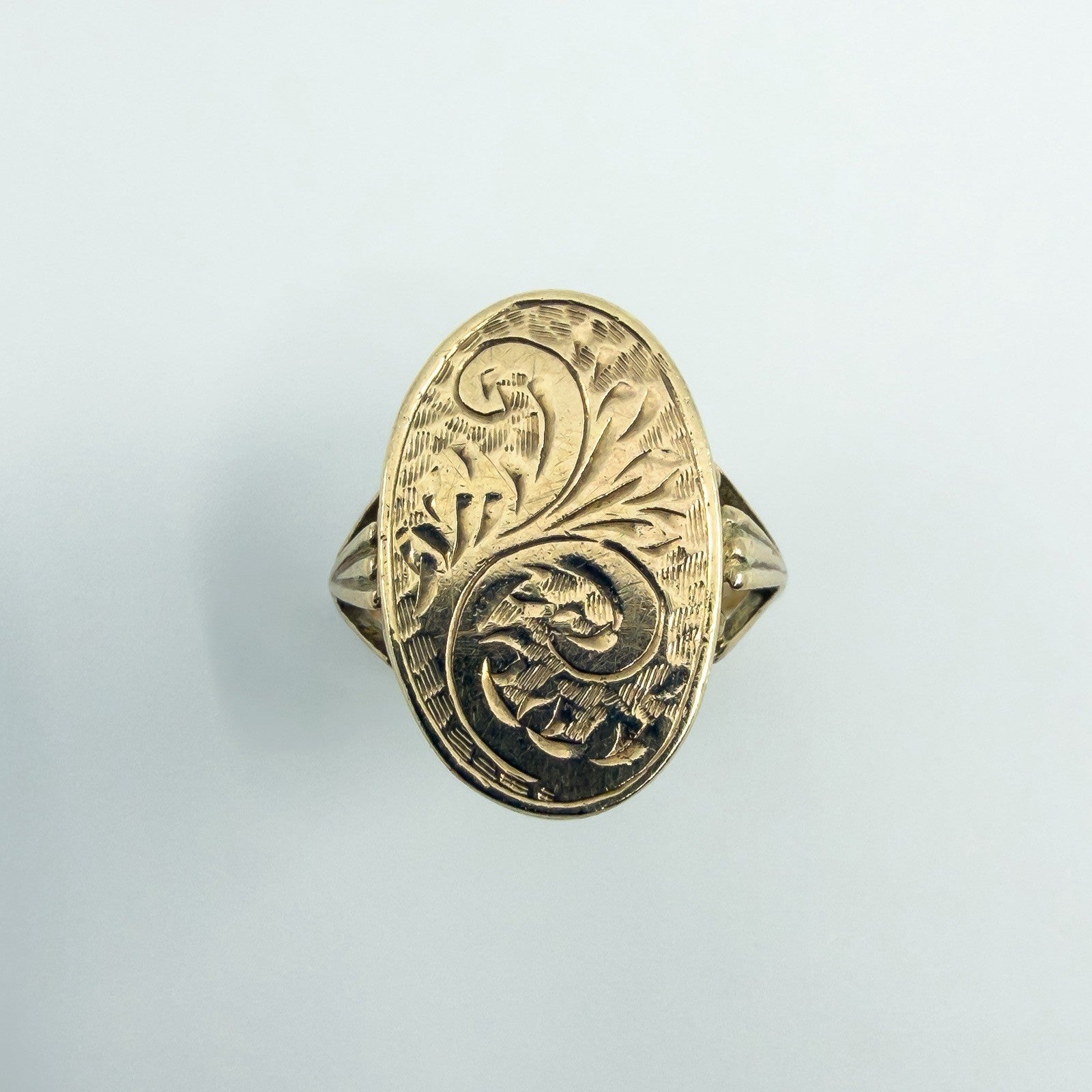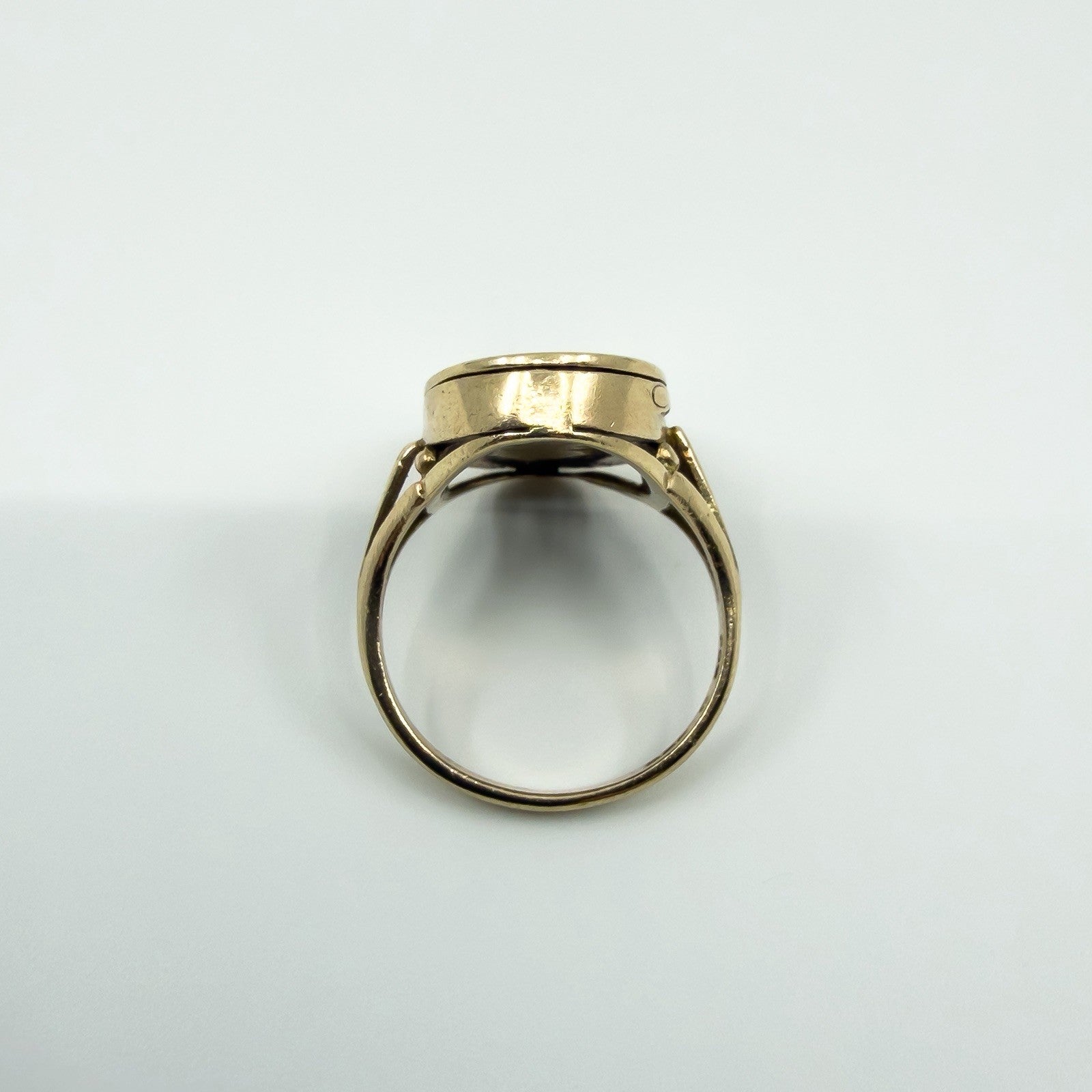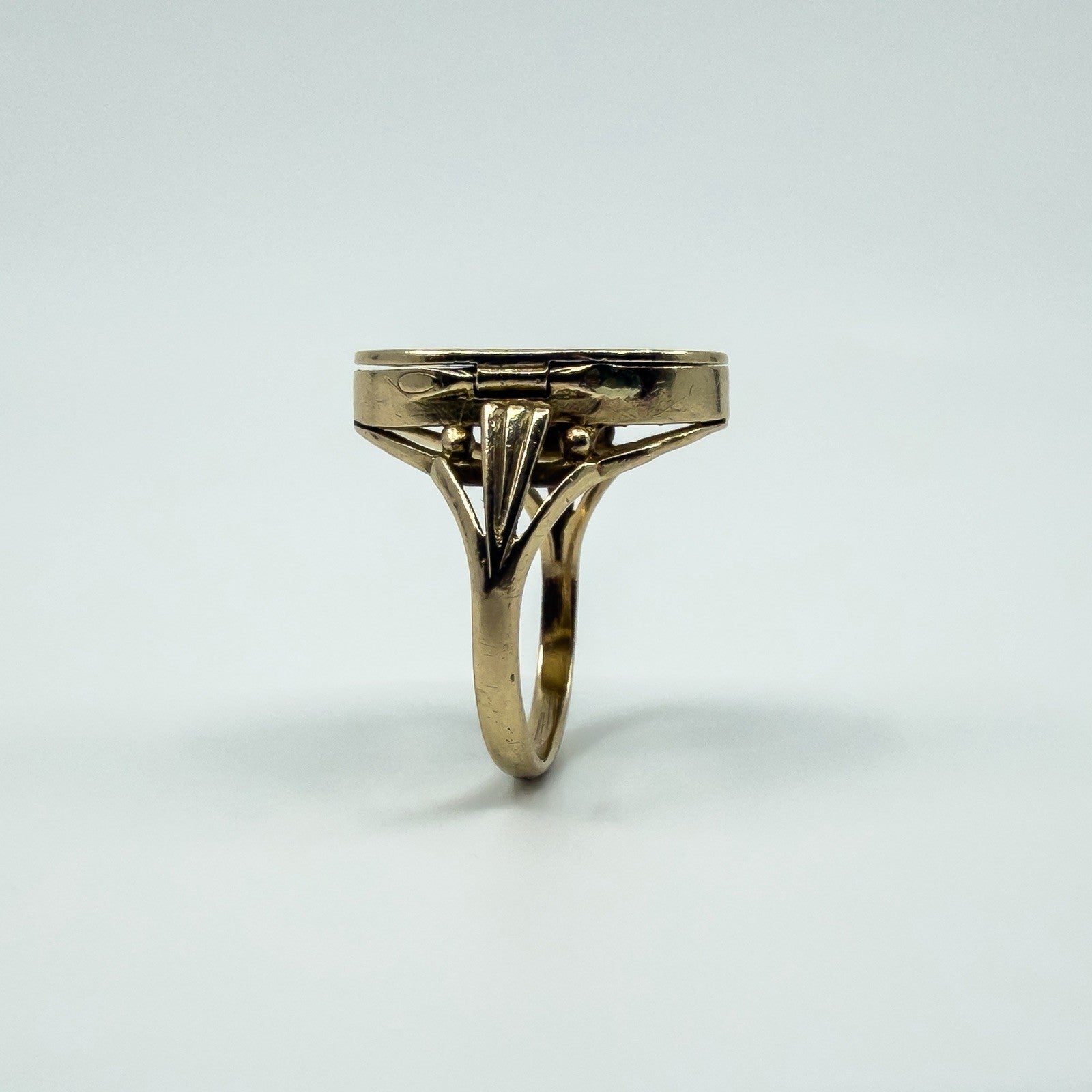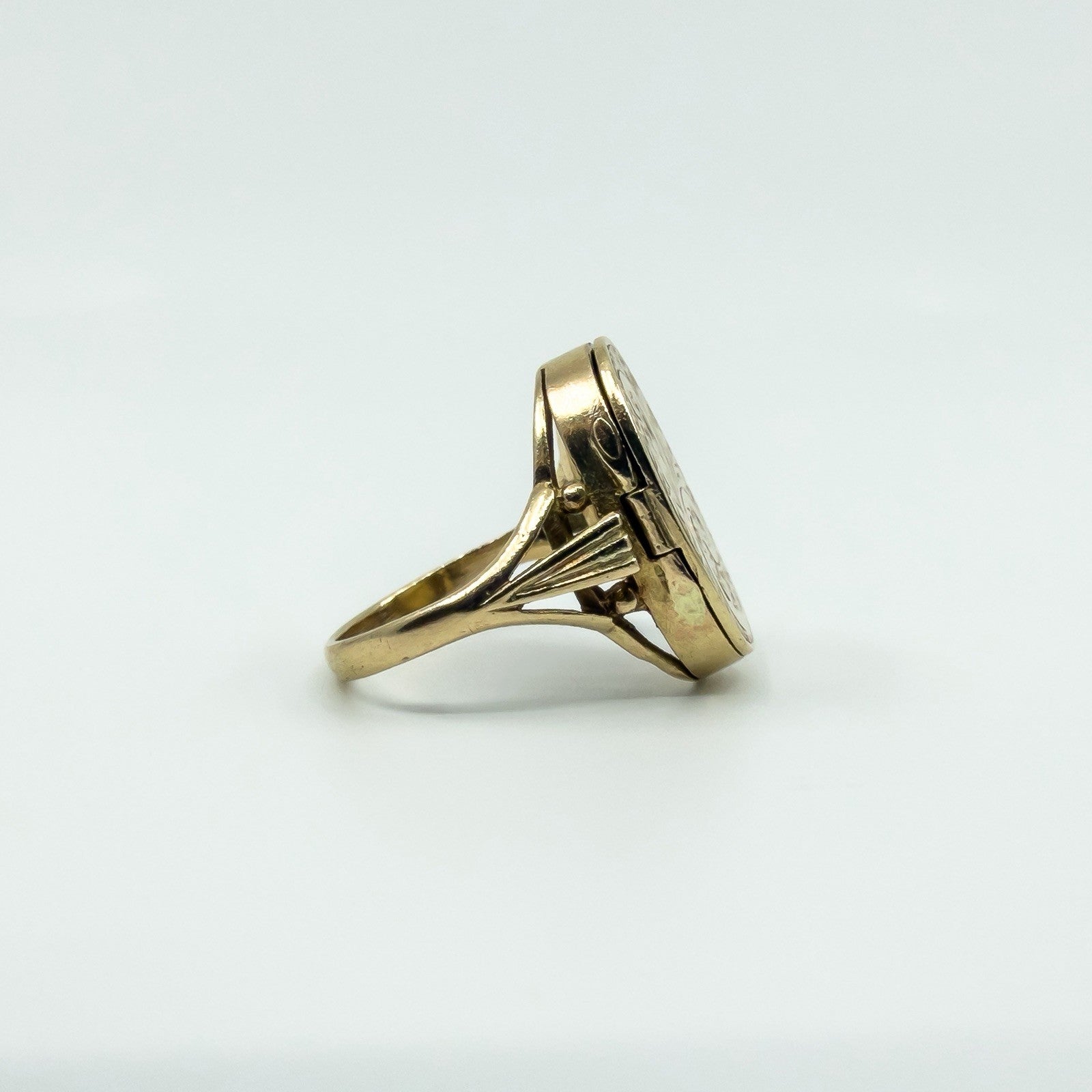 Vintage 9ct Gold Secret Locket Ring Engraved 375 Size O