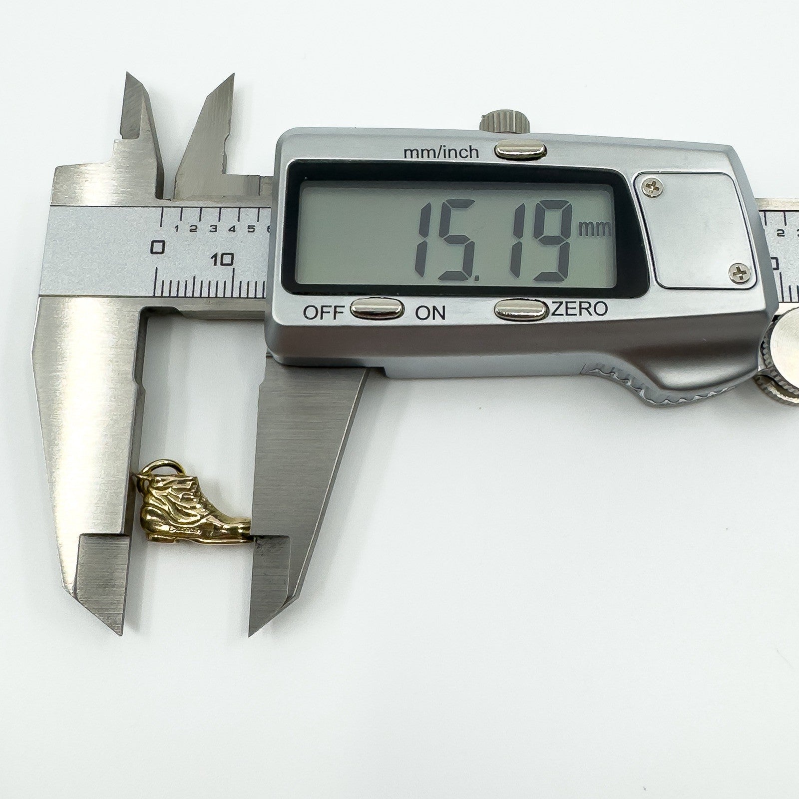 • Item: Shoe boot pendant or charm • Metal: 9ct gold (375) • Construction: Hollow • Fittings: Hoop • Marks: Chester, 9, 375, G (Chester 1957) • Measurements: Approx. 15.1mm x 8.3mm x 4.2mm • Weight: Approx. 0.6g