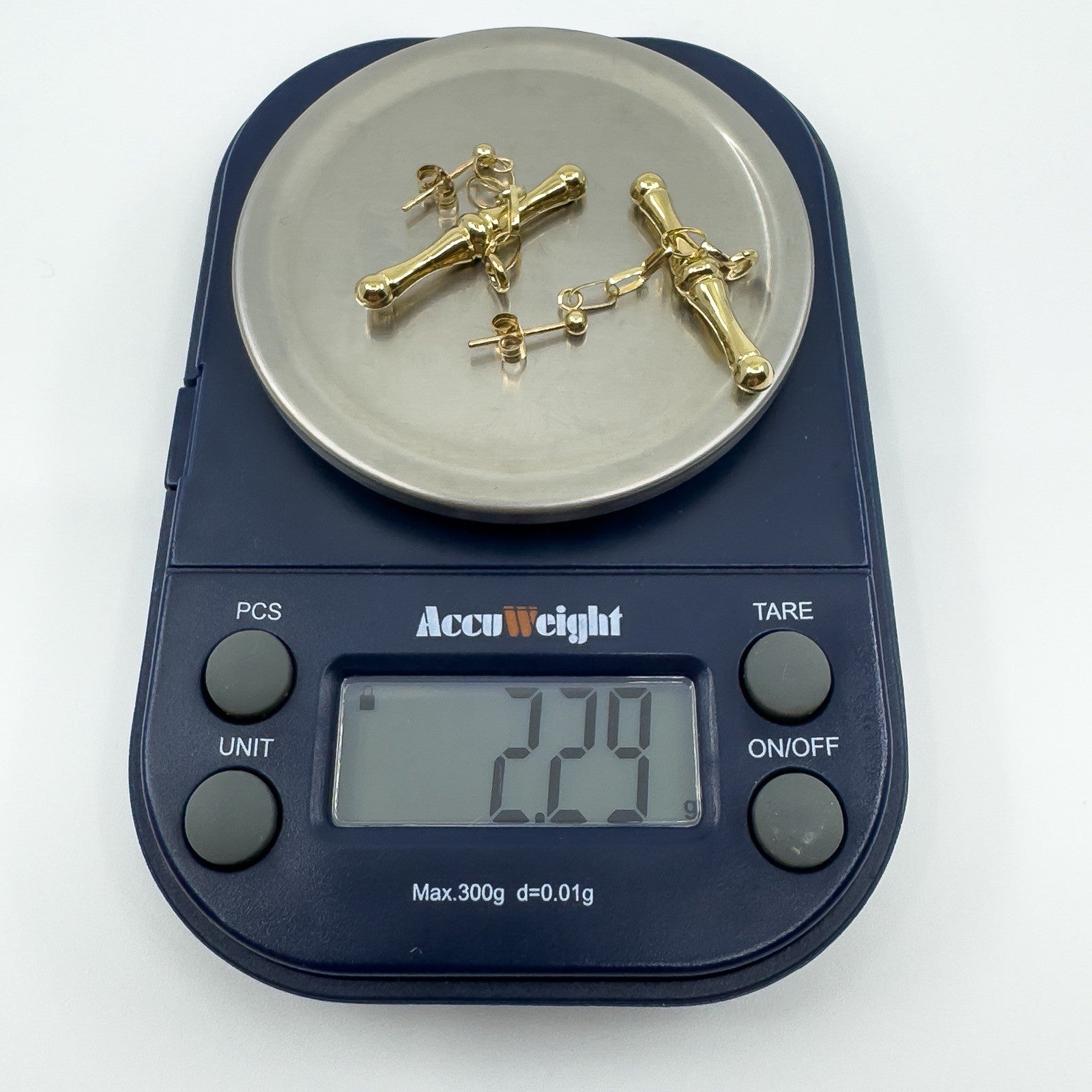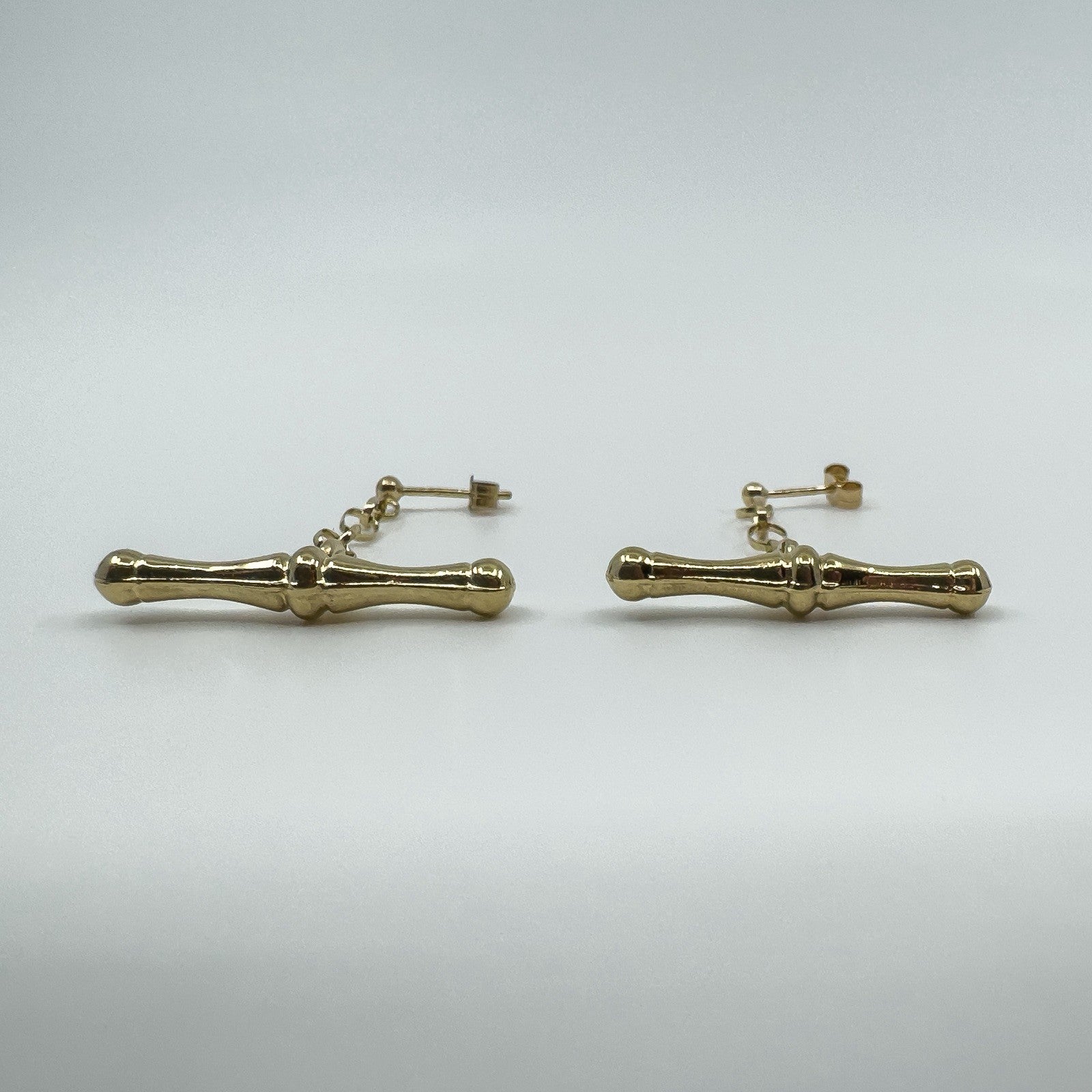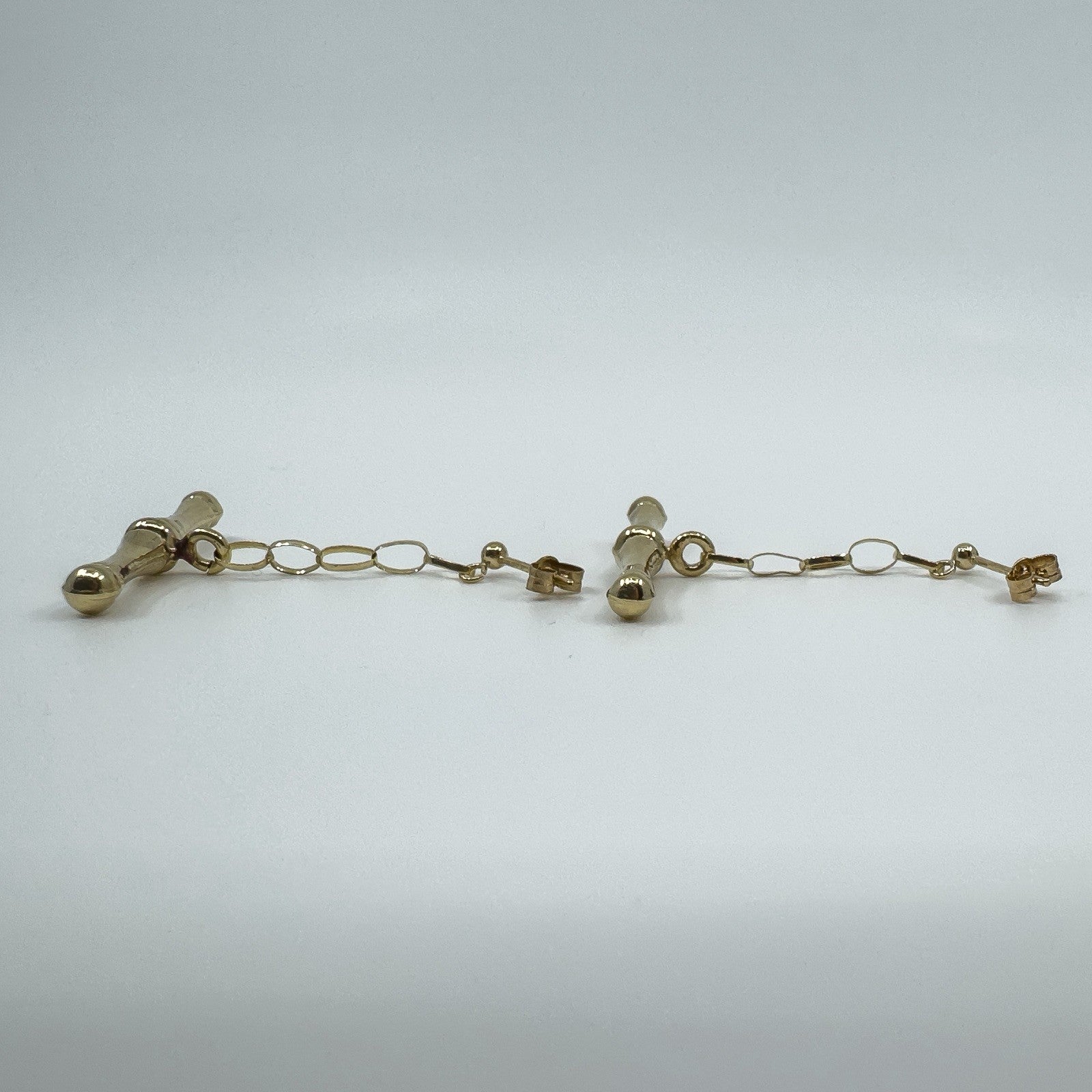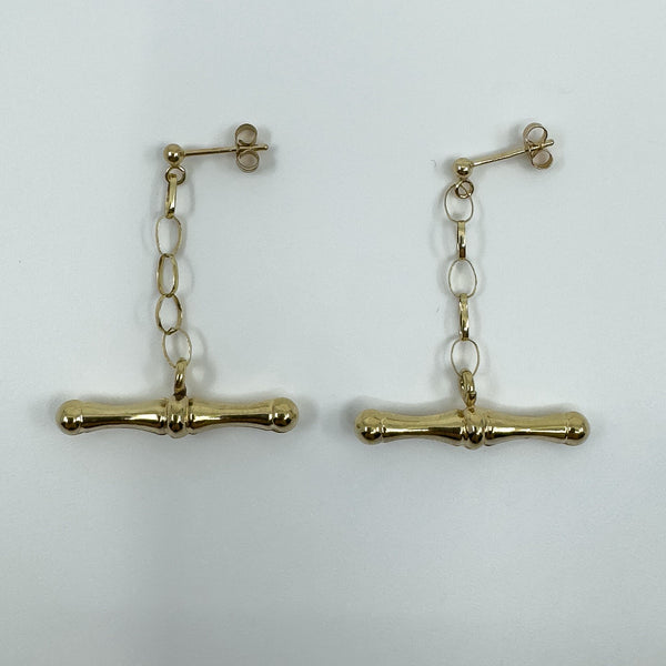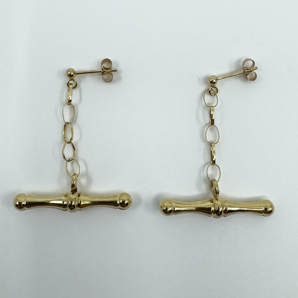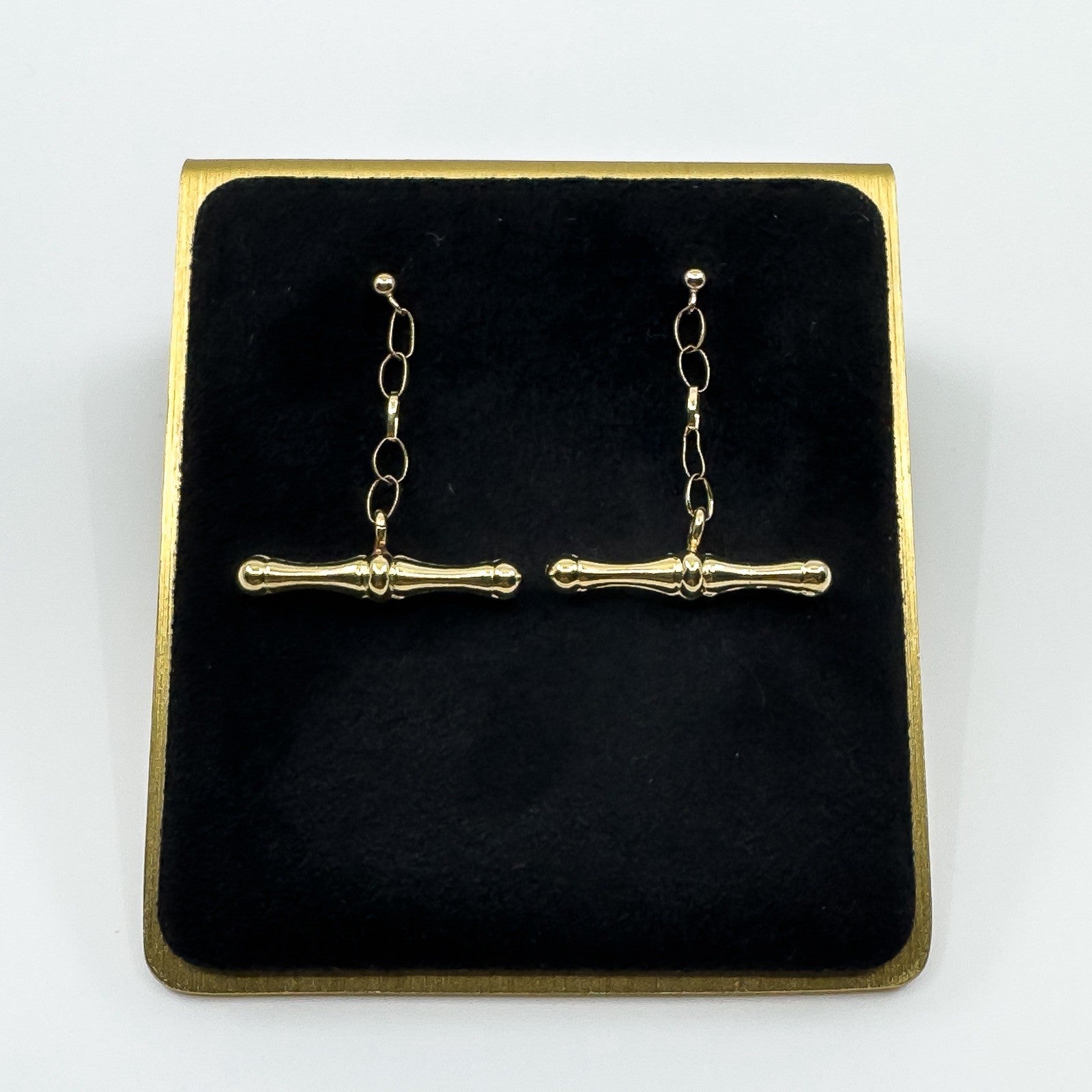 • Vintage 9ct gold T-bar belcher chain drop earrings