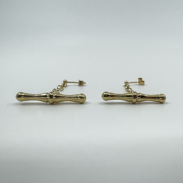 Vintage 9ct gold T-bar drop earrings with belcher chain drops that sway gently. For pierced ears with butterfly backs.