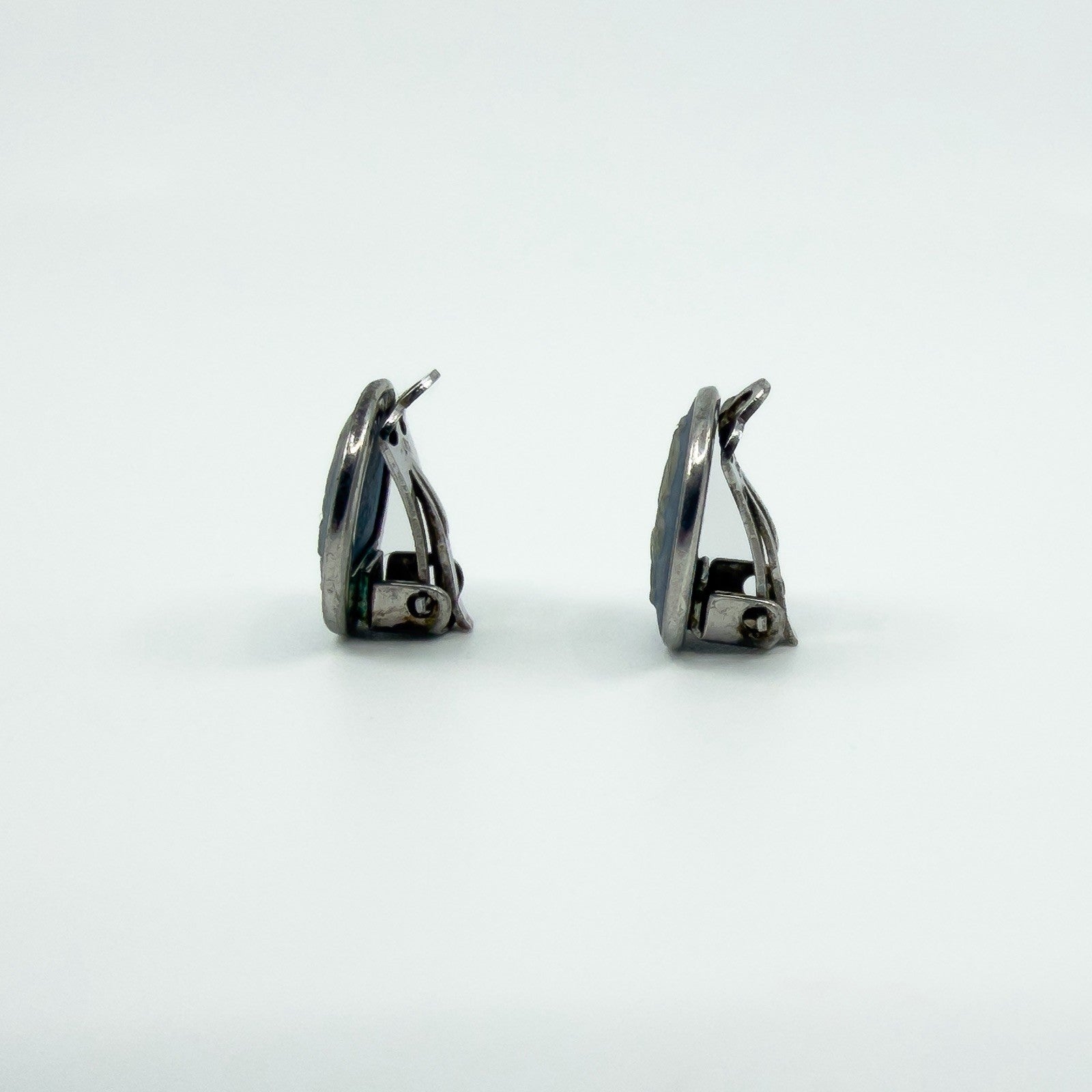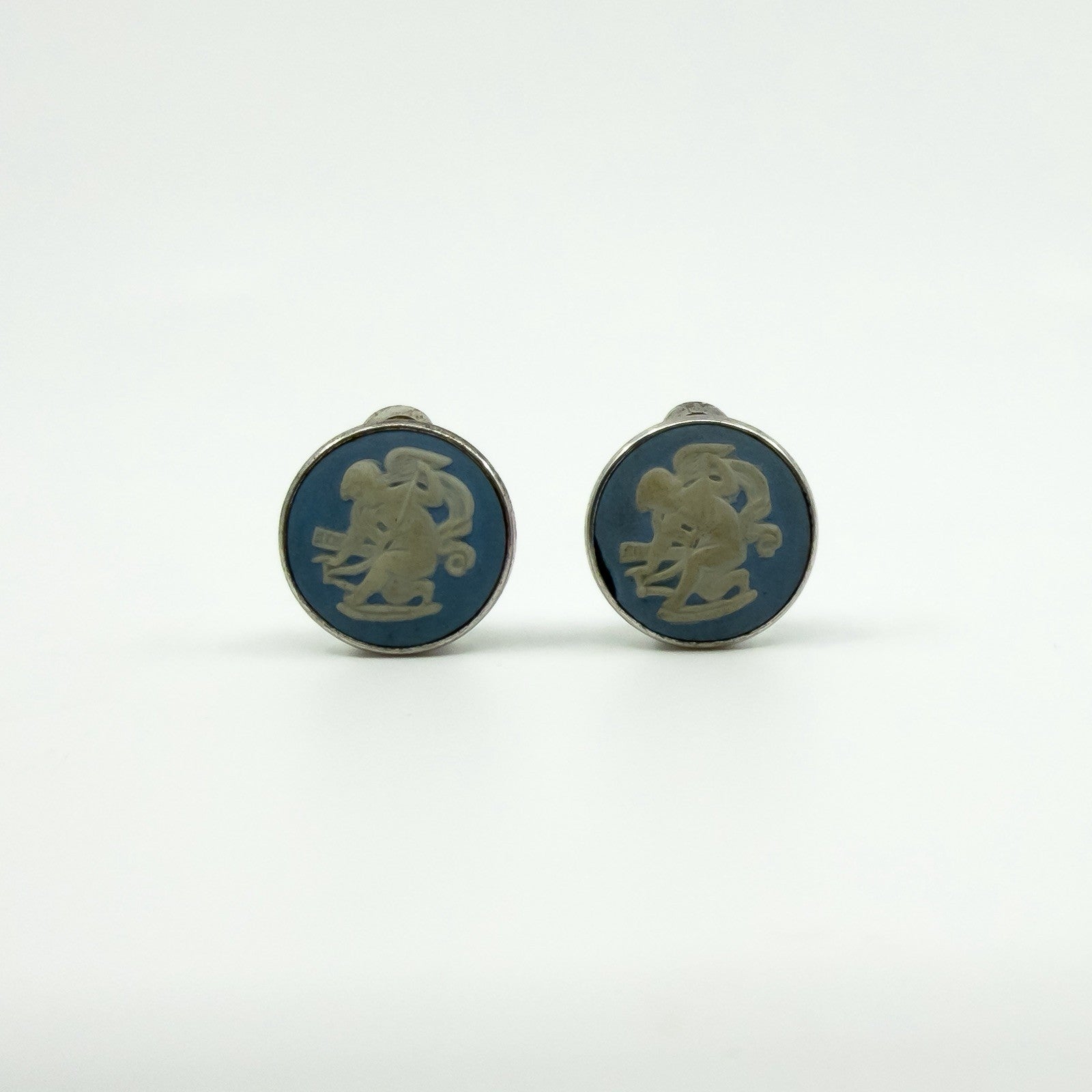• Item: Vintage sterling silver blue jasperware cameo clip-on earrings