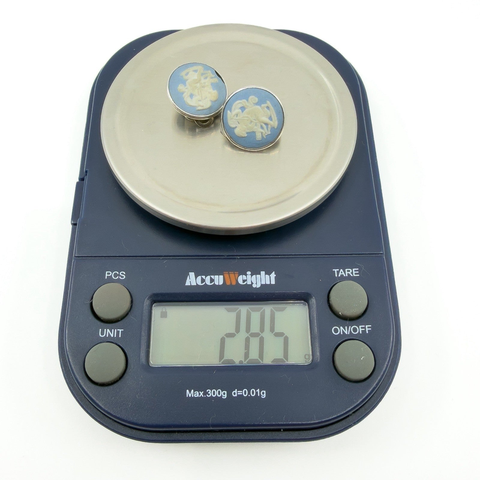 Vintage Sterling Silver Blue Jasperware Cameo Clip-On Earrings