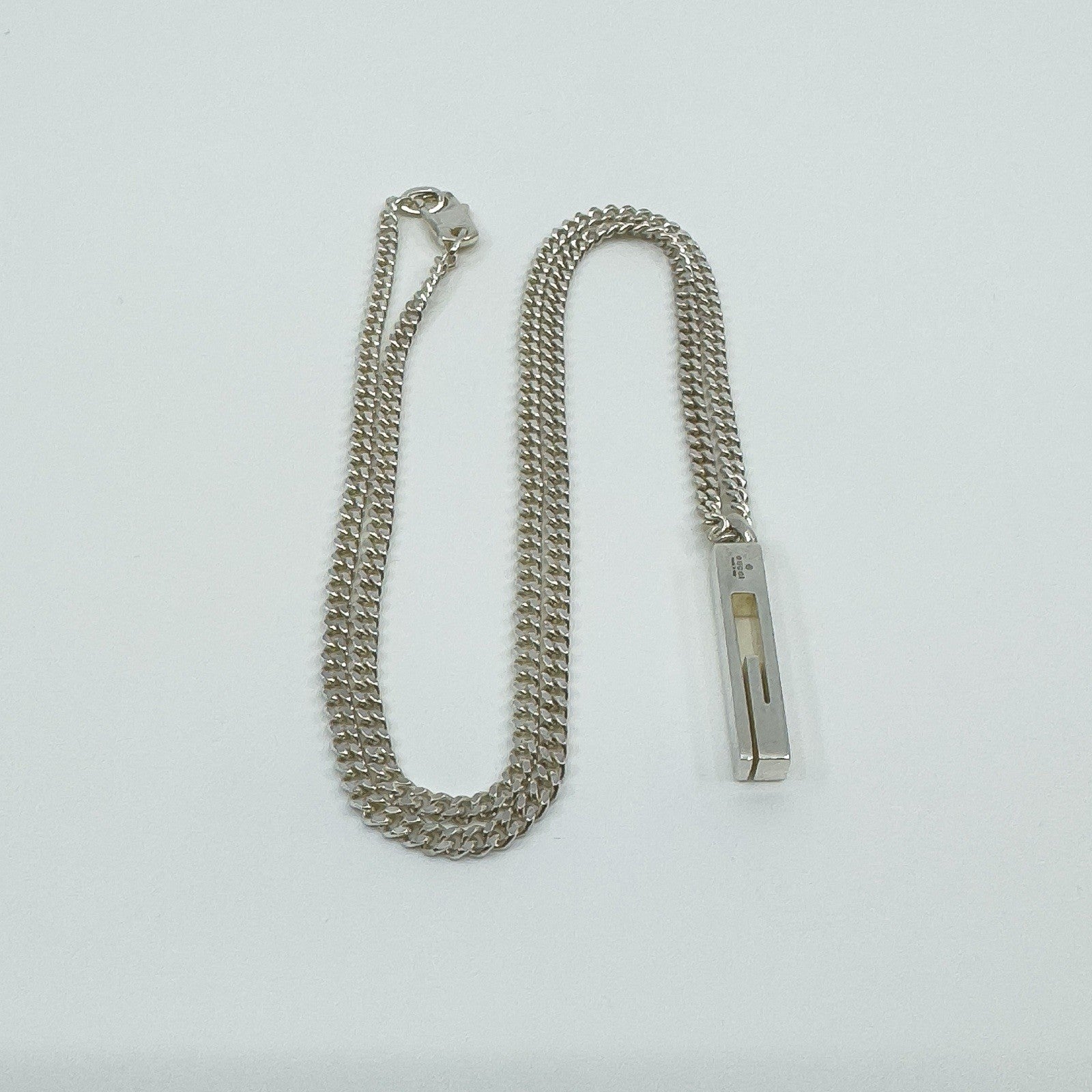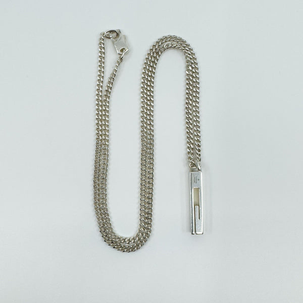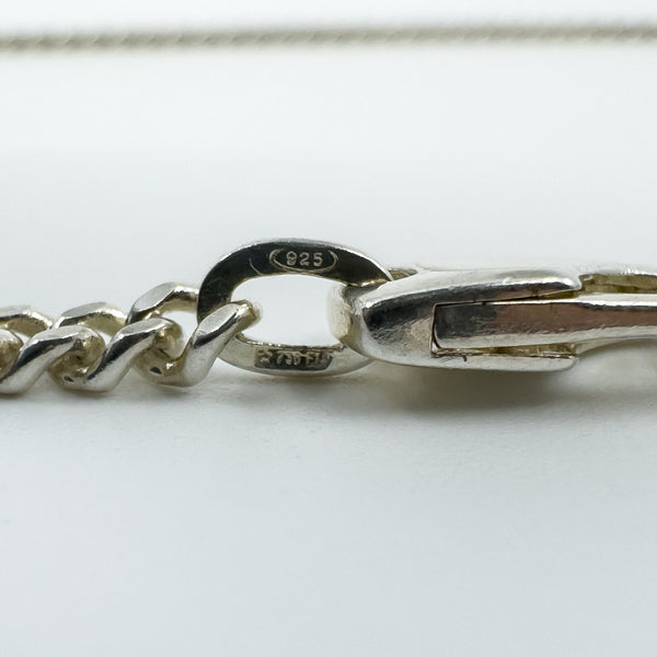 Stamped 925, Ag, Star 738 and FI, the chain measures almost 20 inches with a drop pendant attached. A substantial piece of designer silver jewellery, combining luxury branding with timeless style.