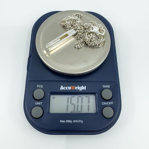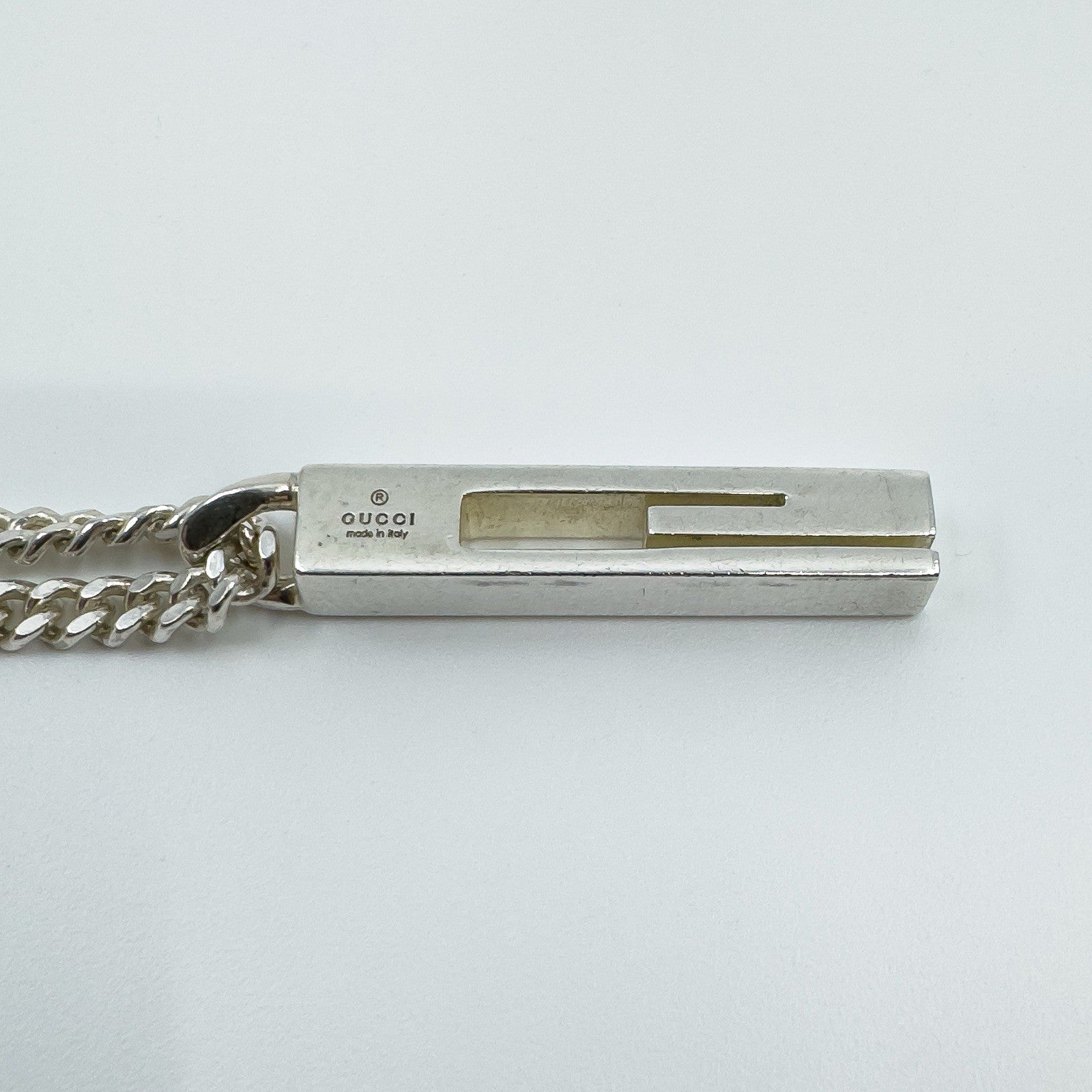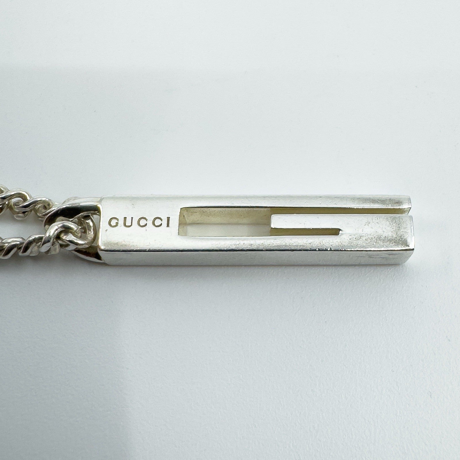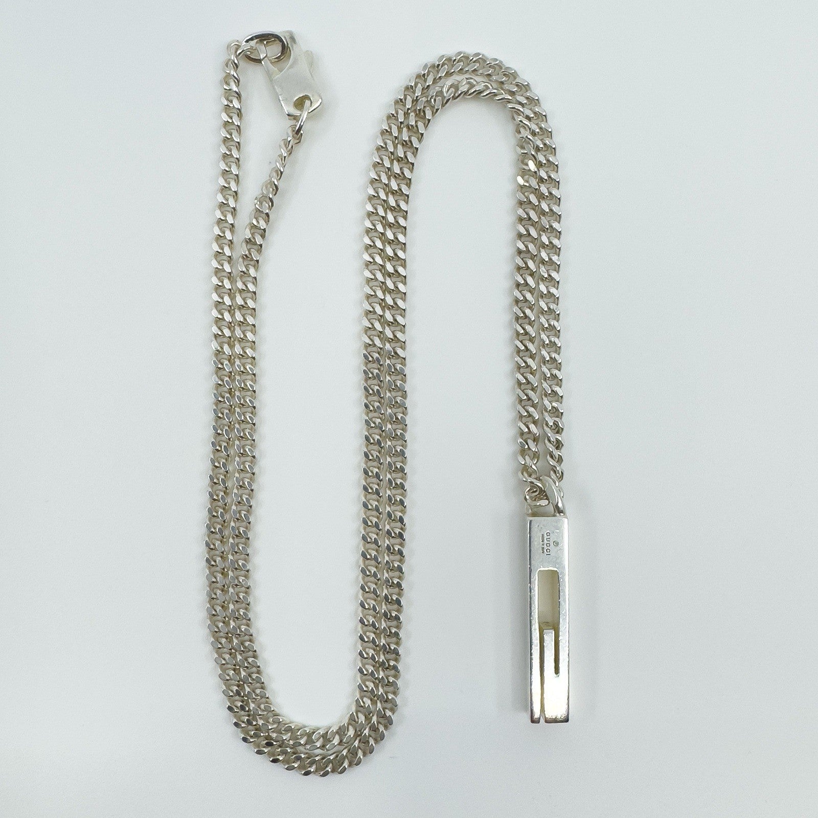 Vintage sterling silver chunky Gucci G drop pendant & chain