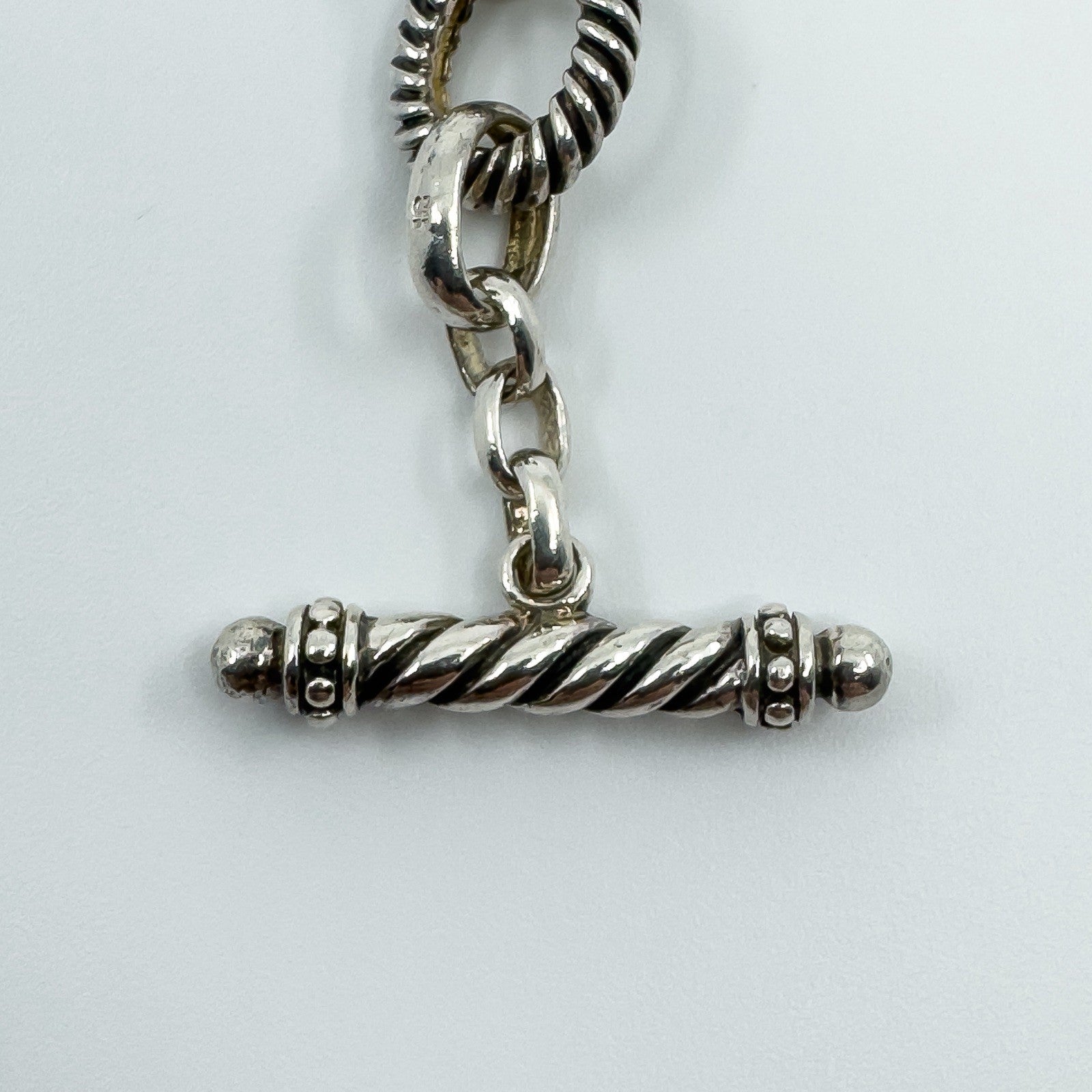 Vintage Sterling Silver Fancy Link Chain T-Bar Toggle 18.5in 925