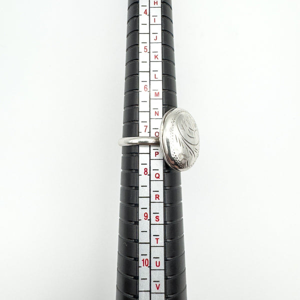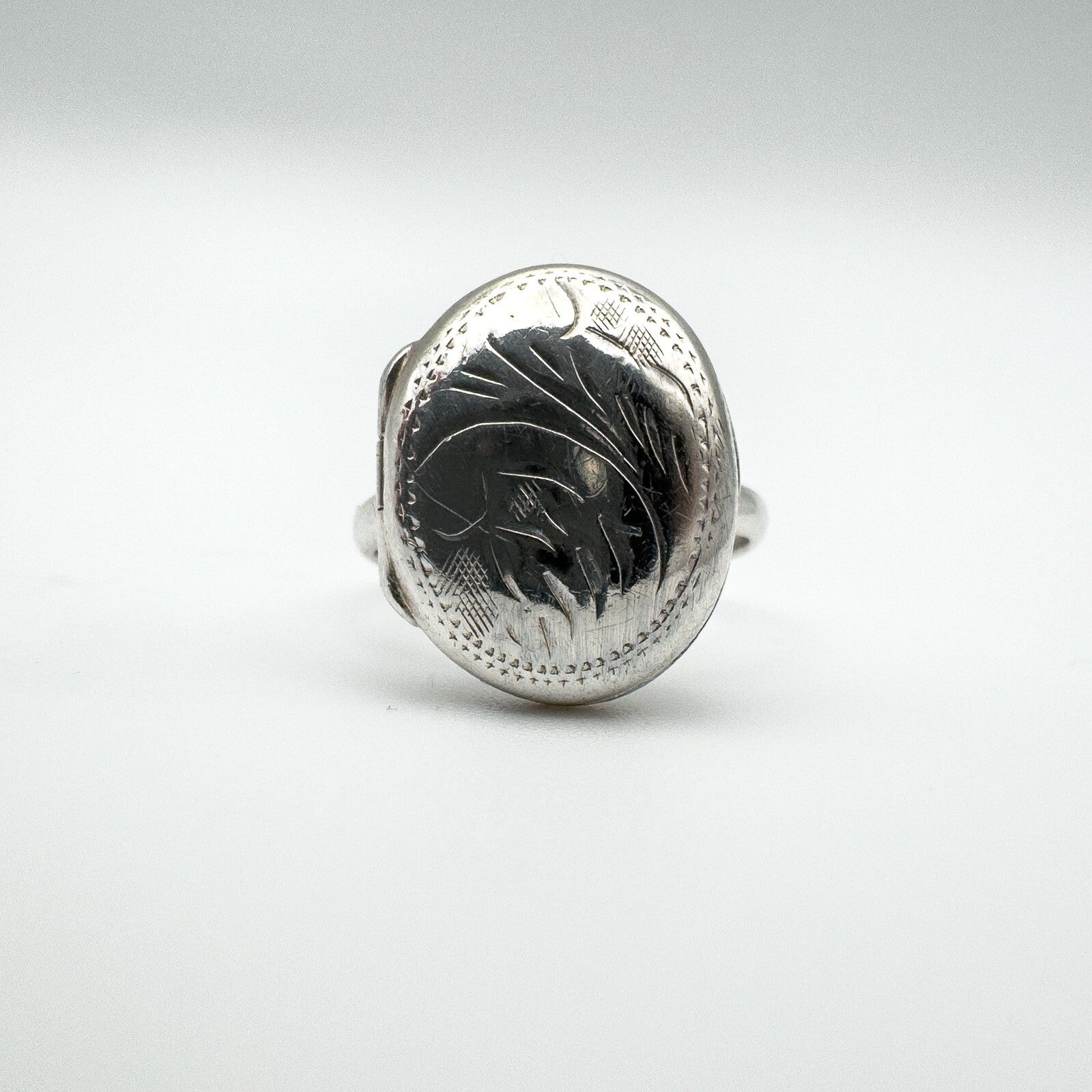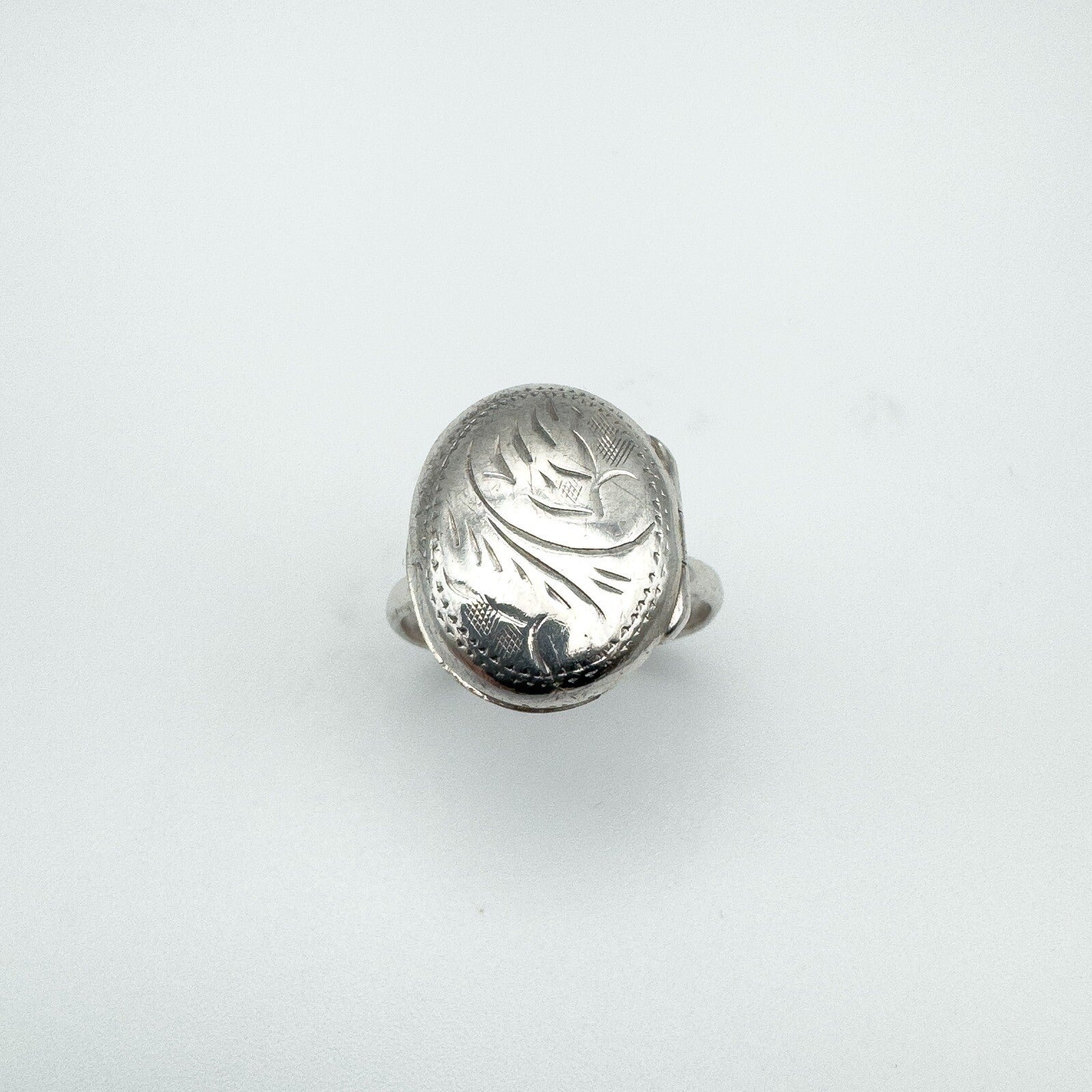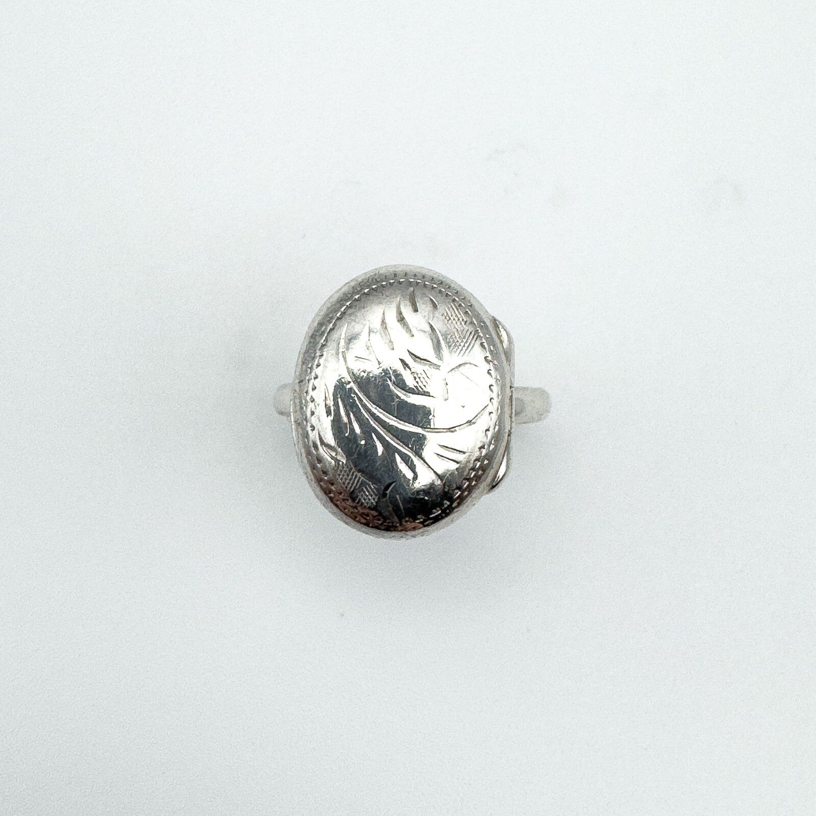 Vintage Sterling Silver Oval Secret Locket Ring Engraved Size N 925