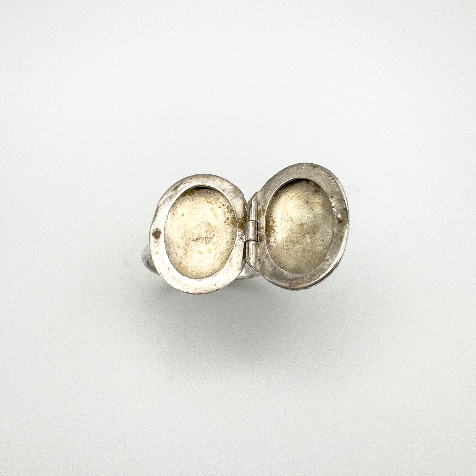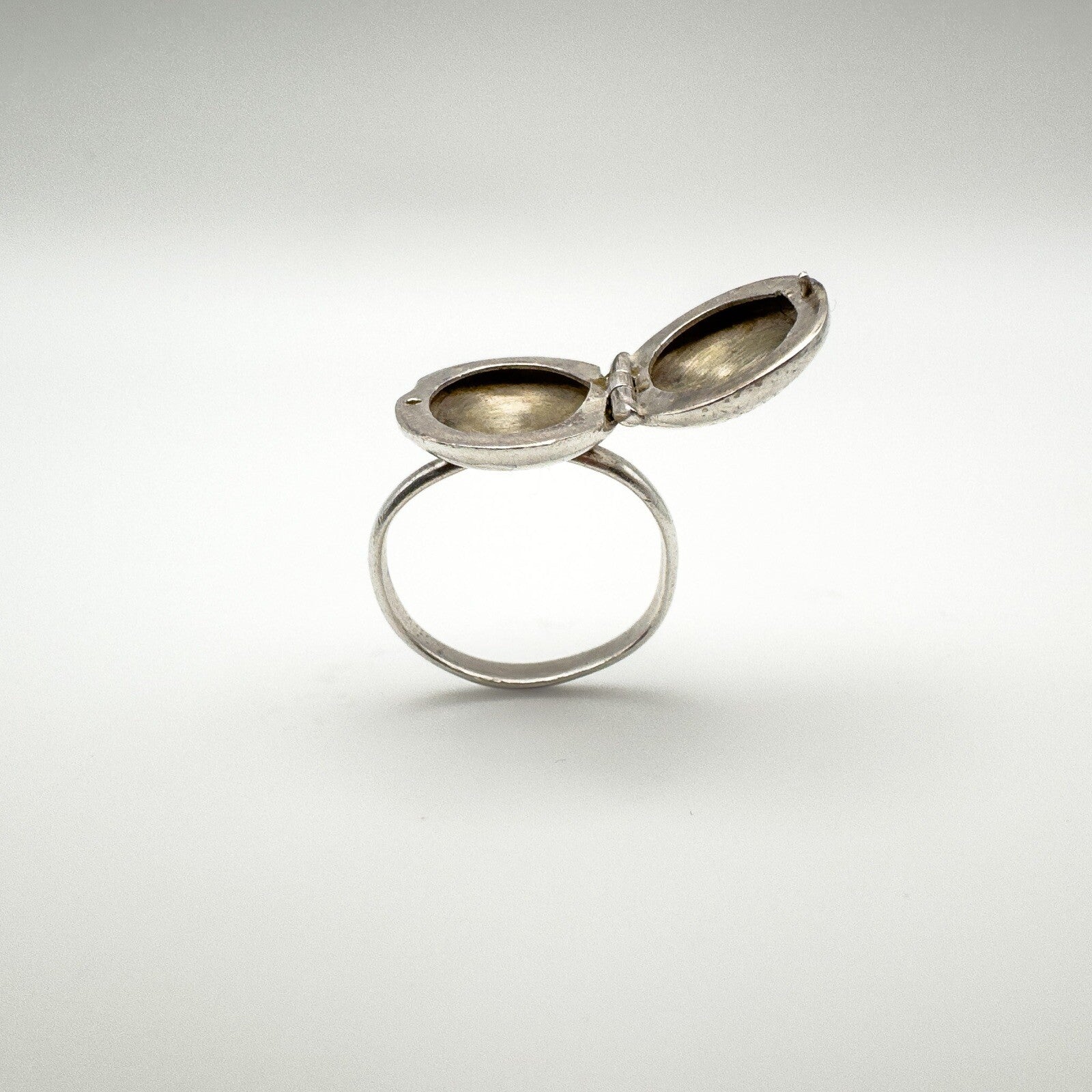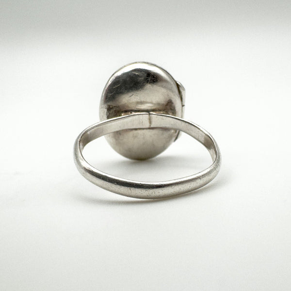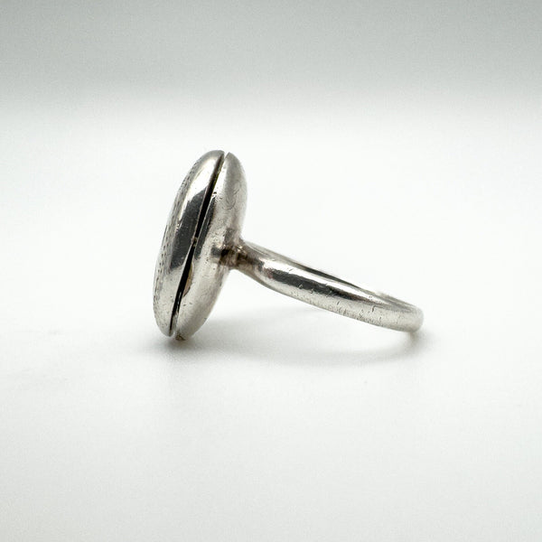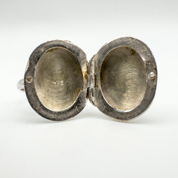 Vintage sterling silver oval secret locket ring