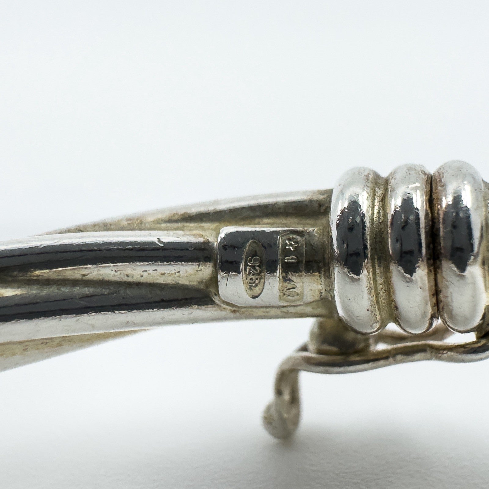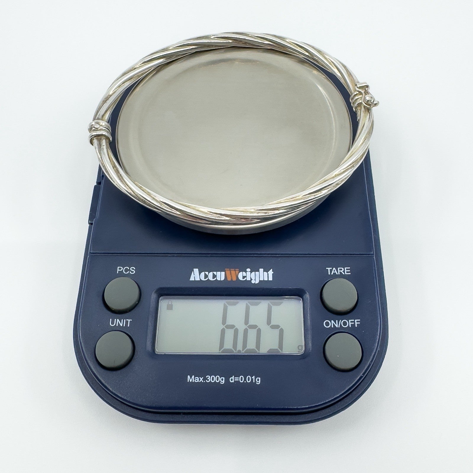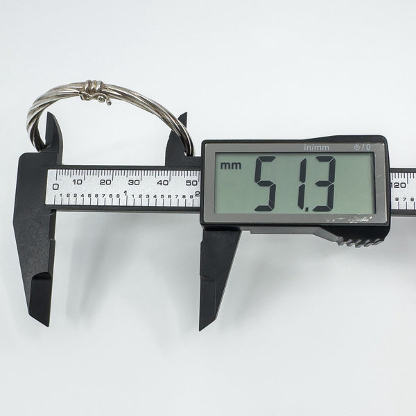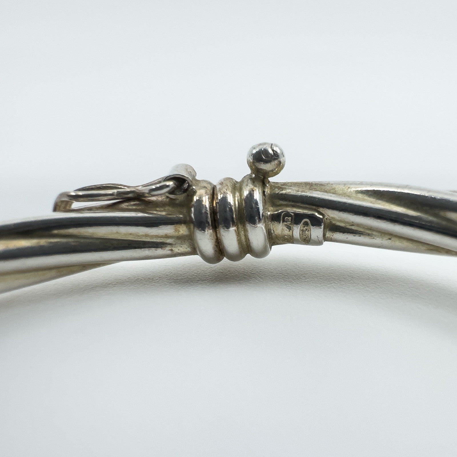 • Vintage sterling silver twisted oval bangle bracelet • Magnetic closure with safety catch • Stamped 925 • Fits approx. 7 to 8 inch wrist • Internal approx. 58.6 × 51.3 mm • Bangle width approx. 3.5 mm • Weight approx. 6.6 g